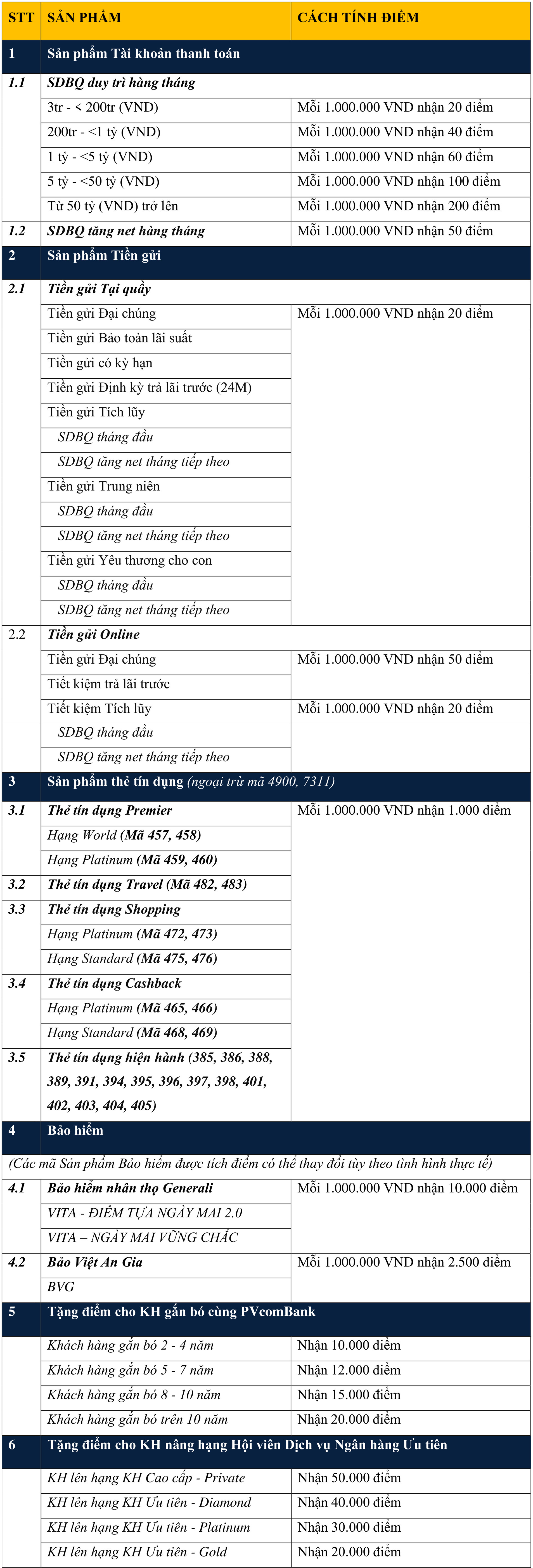 - Khách hàng có thể đổi tới 50.000.000 điểm PVOne/ năm.